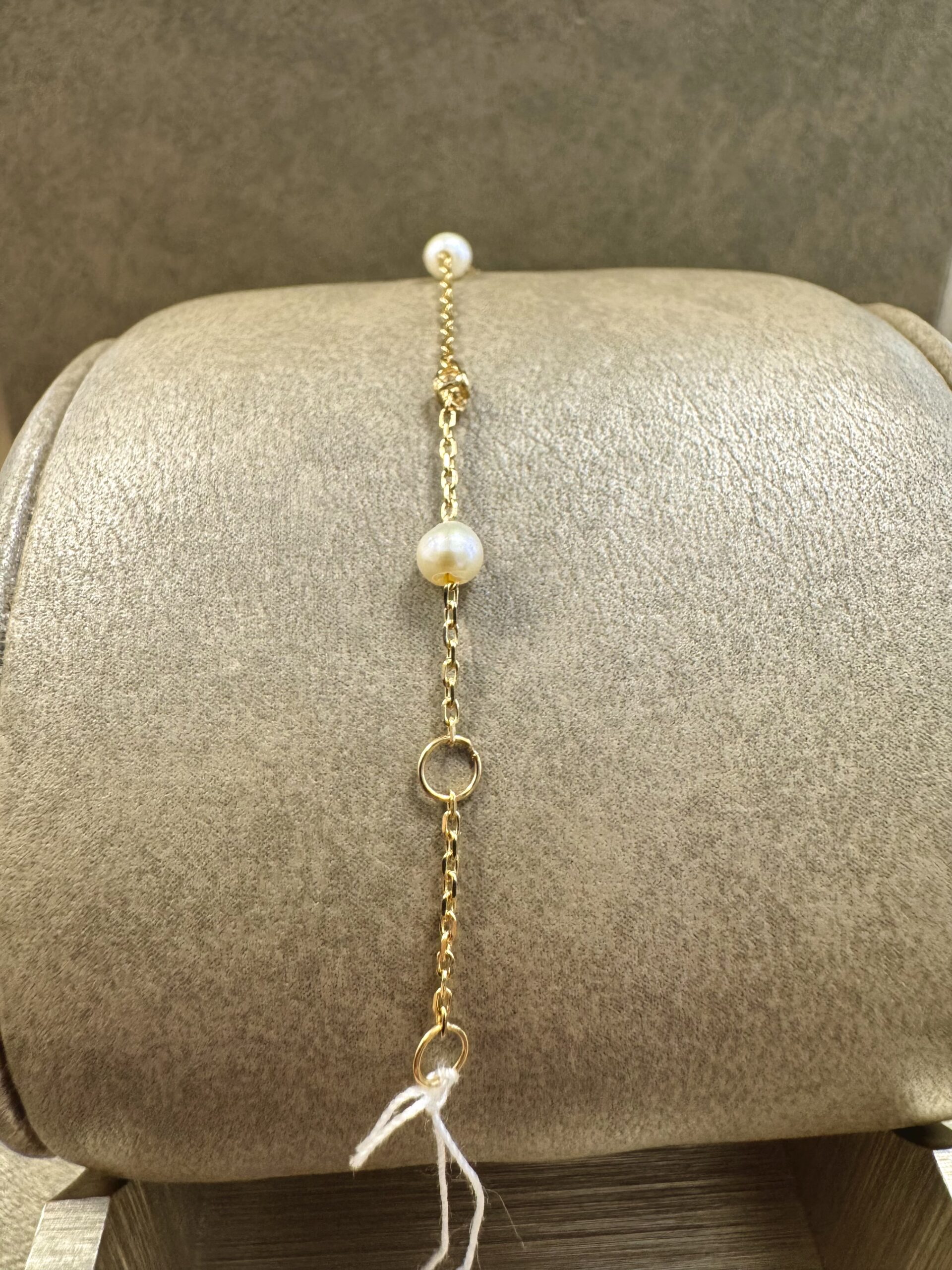 Guldarmbandet är justerbart med sötvattens pärlor samt zirconia stenar.