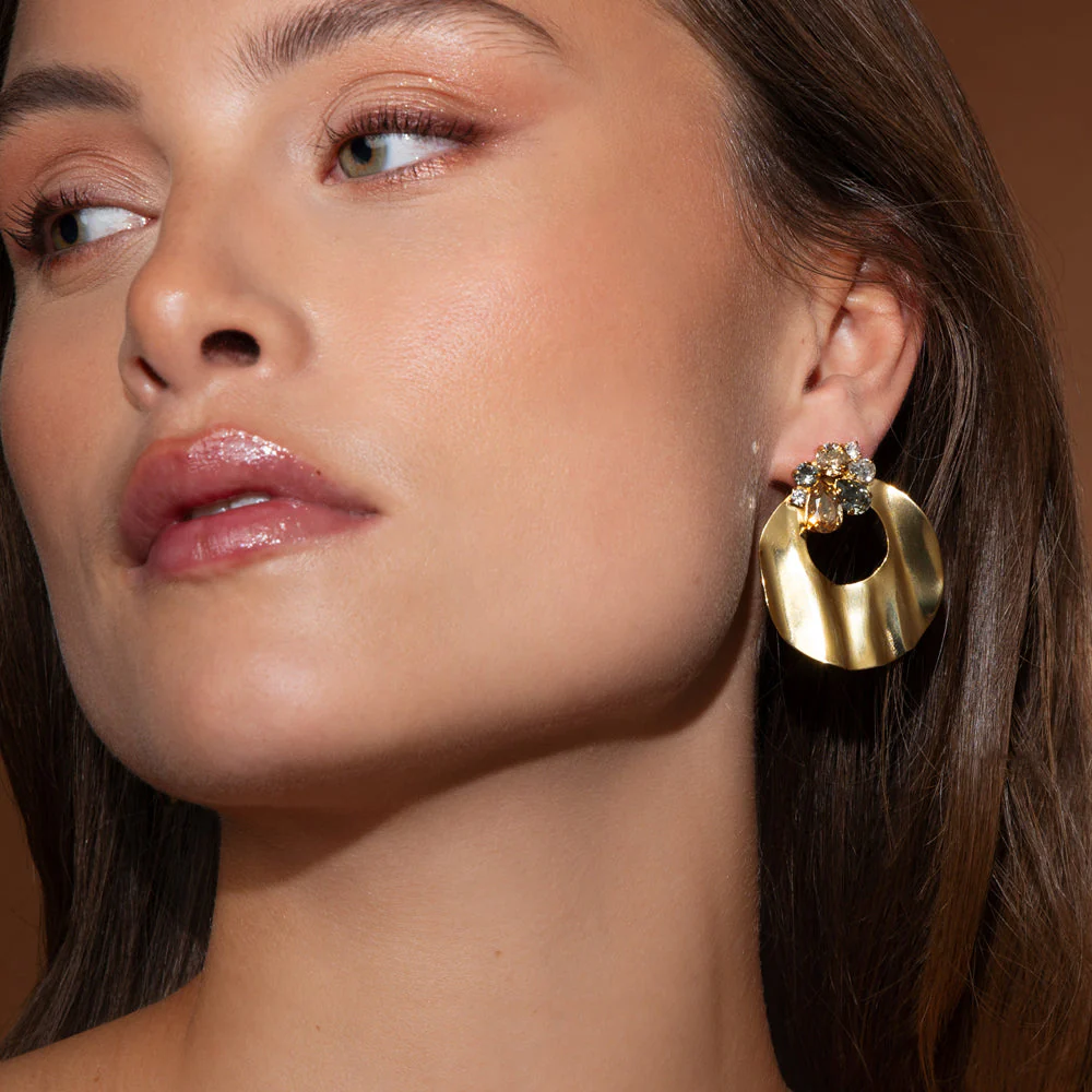 Cay Earrings är skulpturala hoops med en modern twist. De mjuka formerna och den subtila kristalldetaljen gör dem till ett stilrent val – både till vardagsjeans och eleganta kvällslooks.