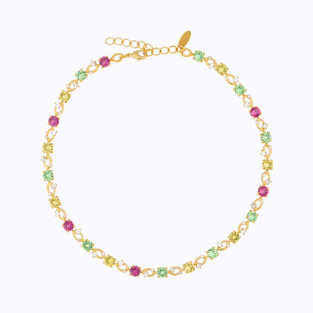 Fay Necklace är ett gnistrande halsband med lekfull elegans. Kristallerna fångar ljuset från alla vinklar – perfekt för både vardag och fest.