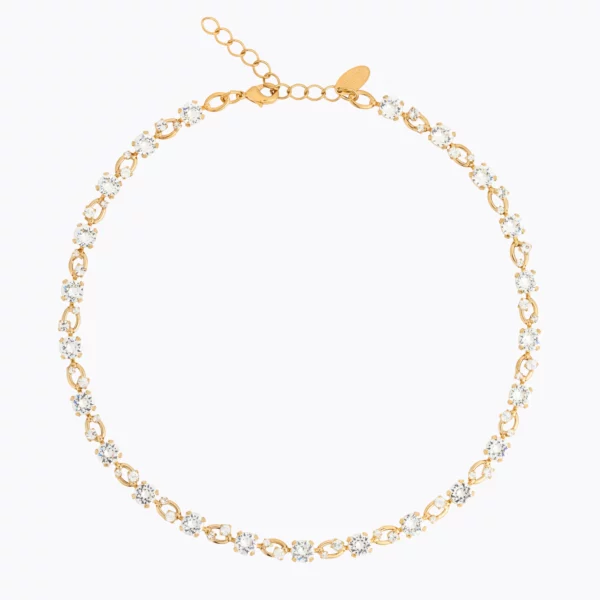 Fay Necklace är ett gnistrande halsband med lekfull elegans. Kristallerna fångar ljuset från alla vinklar – perfekt för både vardag och fest.