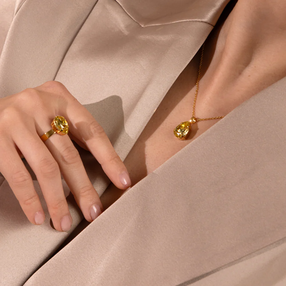 Modell | Mini Drop Halsband ReCreated™ Dark Jonquil - Guld |