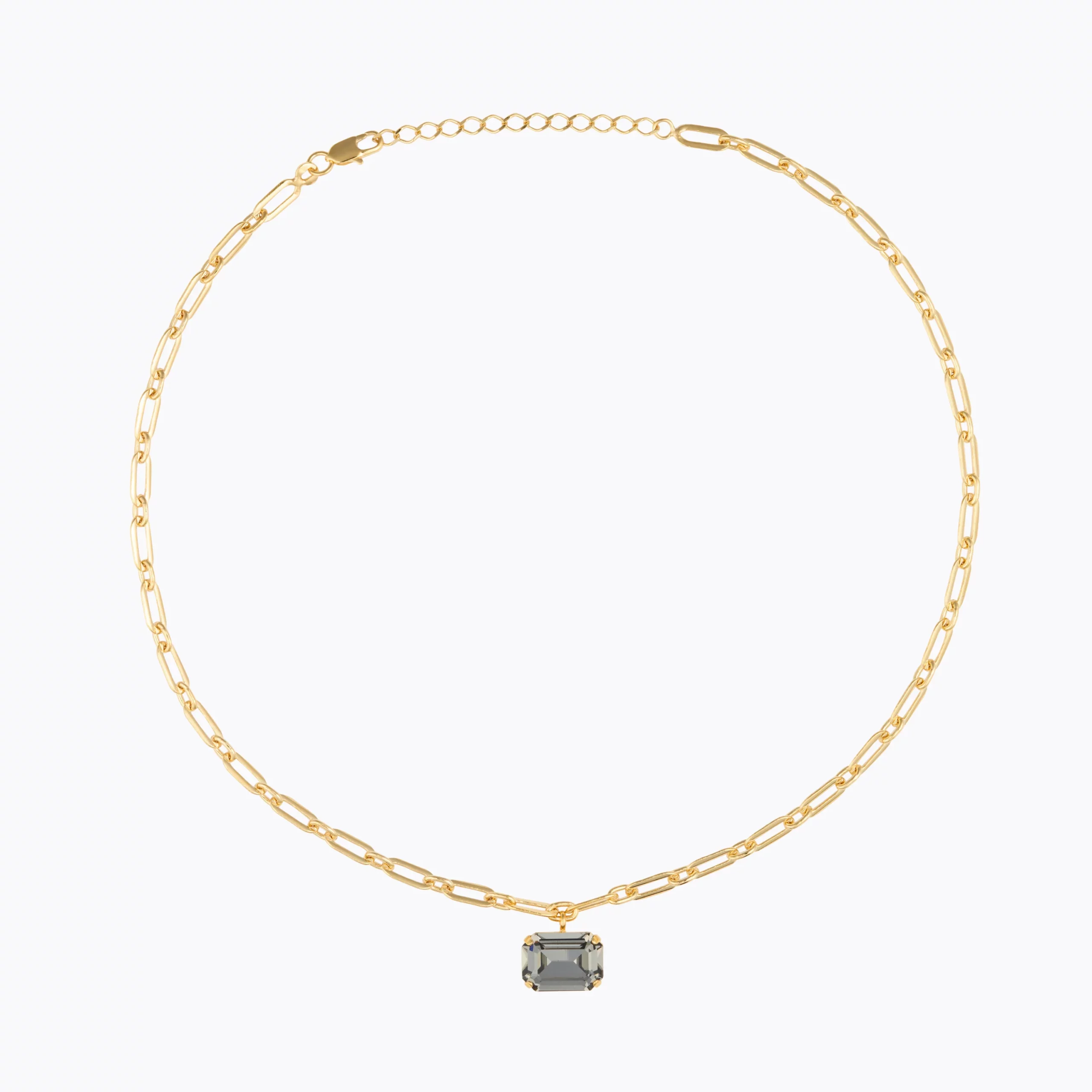 En elegant, mindre version av det populära Lydia-halsbandet. Pläterat i 18k guld eller rhodium och dekorerat med en gnistrande kristall – en stilren accessoar som passar alla tillfällen.