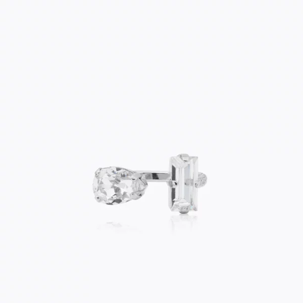 Noelle Ring har två kristaller i olika former som skapar ett lekfullt, stilrent uttryck. En modern cocktailring och garanterad favorit – dessutom justerbar för perfekt passform.