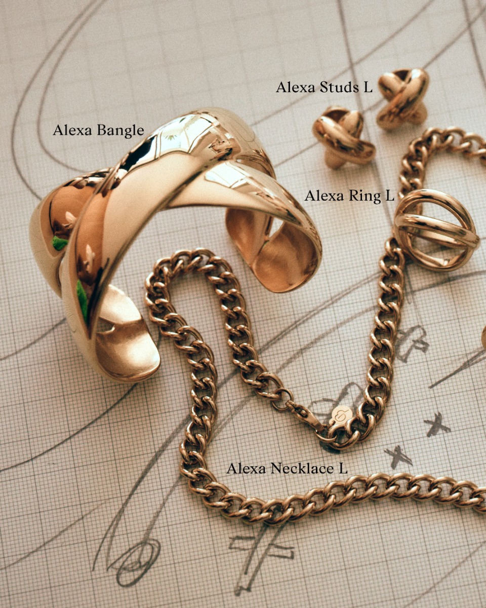 Alexa har en stilren och elegant design som passar både till vardag och fest. Små studs i 14K guldplätering. Bredd 14 mm. Tillverkade i rostfritt stål, nickelsäkra och vattenresistenta.
