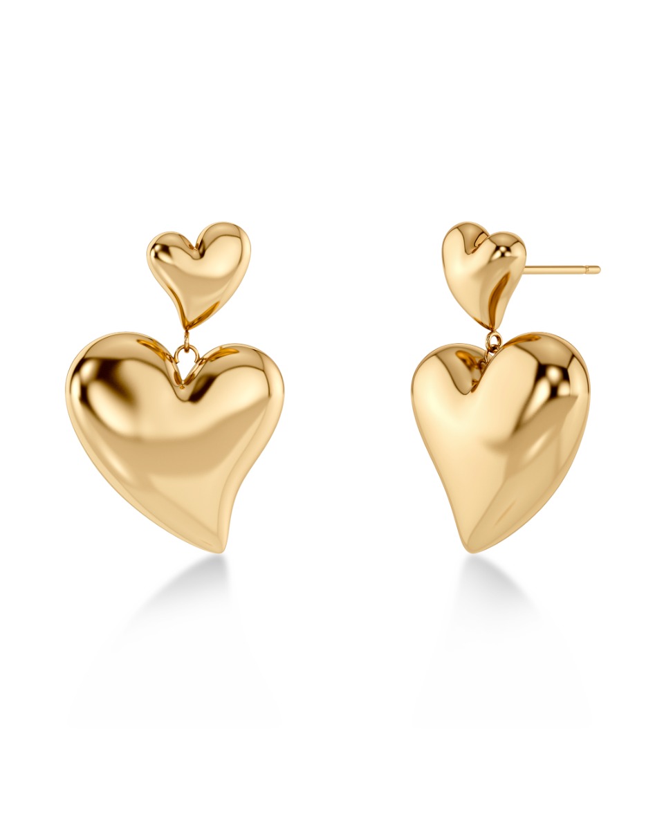 Amorina-studs i 14K guldplätering med lekfull hjärtform. Storlek 18 × 25 mm. Tillverkade i rostfritt stål, nickelsäkra och vattenresistenta.