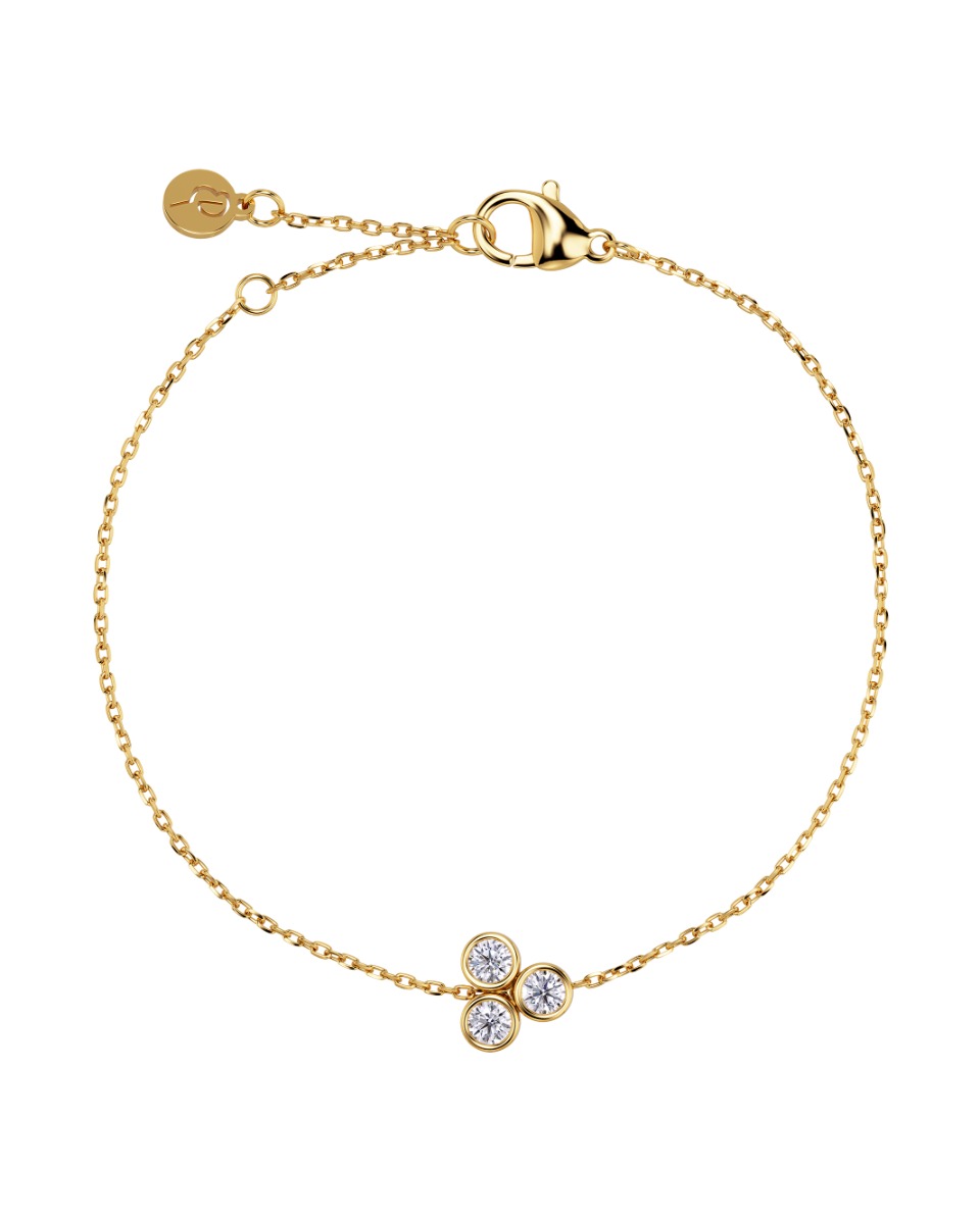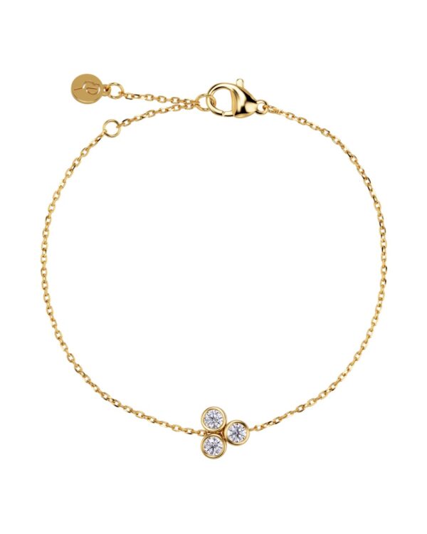 Nätt armband ur Barre-serien i 14k guldplätering med tre små glittrande stenar. Matcha med halsbandet och studsen för en enhetlig look.