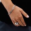 Nätt armband ur Barre-serien i blankt rostfritt stål med tre små glittrande stenar. Matcha med halsbandet och studsen för en enhetlig look.