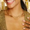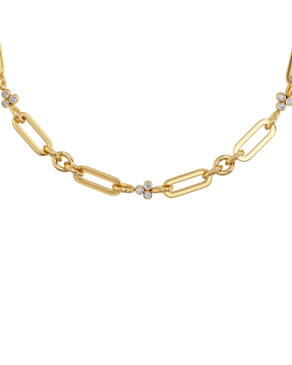 Kaxigt multihalsband ur Barre-serien i 14k guldplätering med länkar i olika former och tre små glittrande stenar. Matcha med studsen och armbandet för en komplett look.