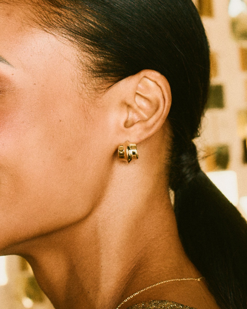 Små hoops ur Barre-serien i 14k guldplätering med mjuka former och ett stilrent uttryck utan stenar. Snygga att matcha med multihalsbandet, armbandet eller ringen.