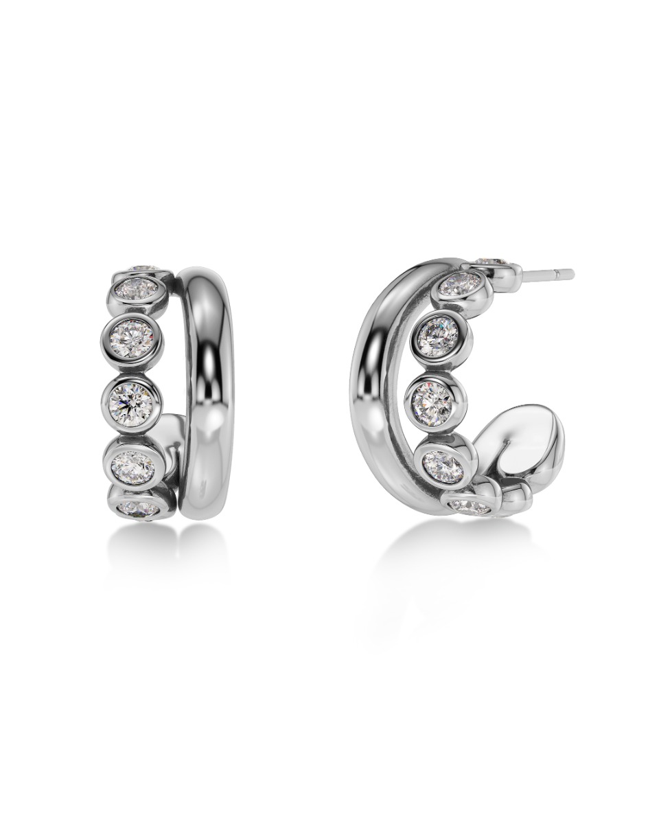 Dessa större hoops i blankt rostfritt stål har två band – ett med gnistrande cubic zirconia och ett slätt – som ger intrycket av två örhängen i ett.