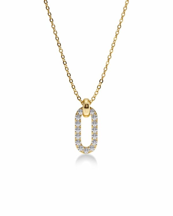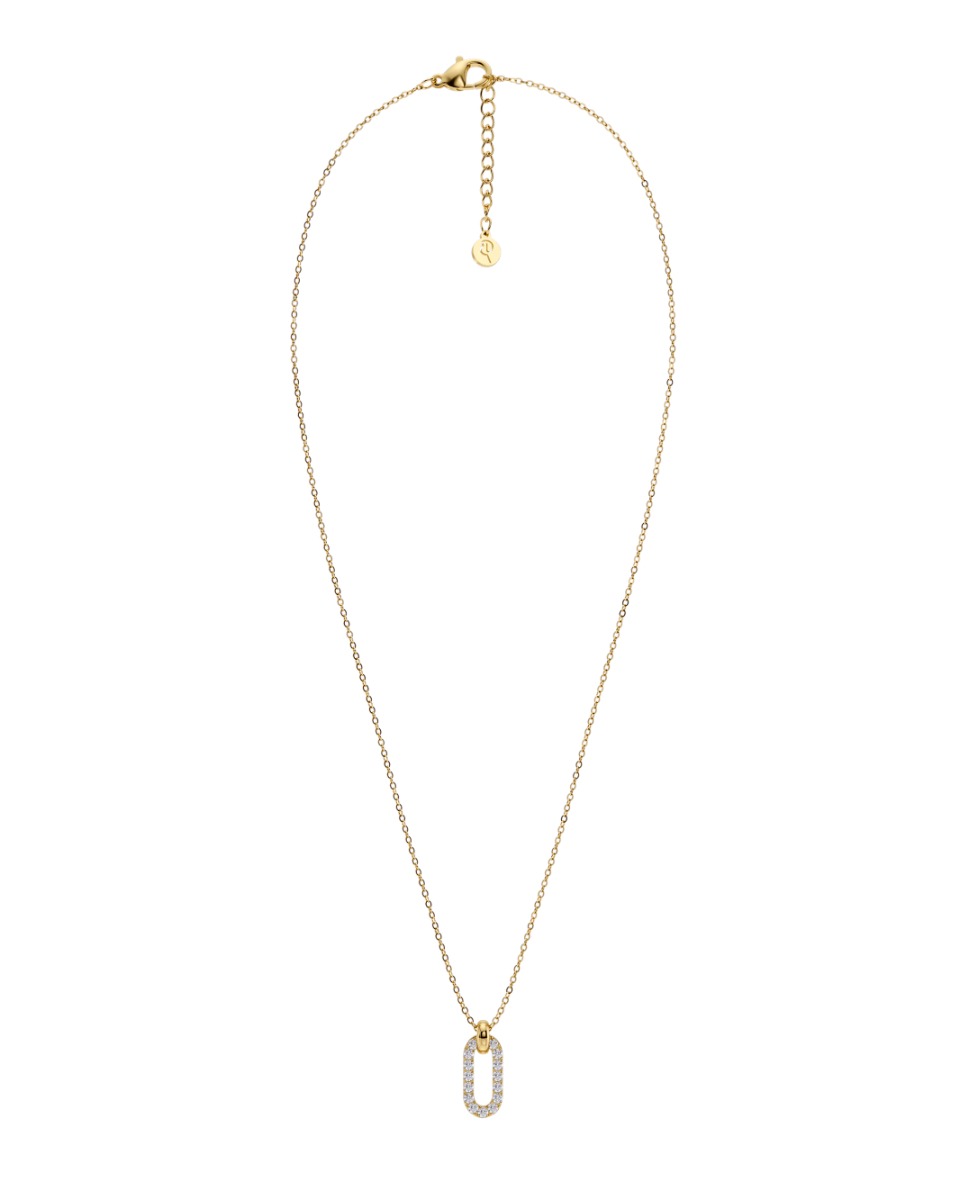 Elegant halsband ur Inez-serien i 14k guldplätering med avlång, stenbeströdd charm på fasettslipad ankarkedja.