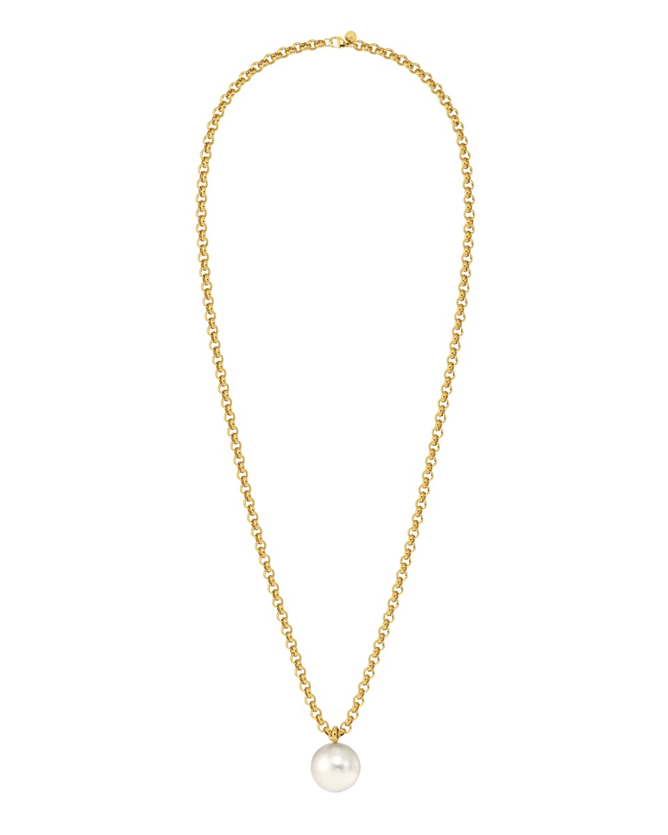 Halsband i 14k guldplätering med stor pärlemorpärla på ärtkedja – från serien Lexie.