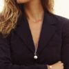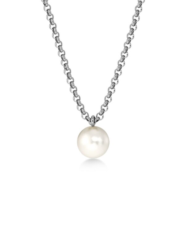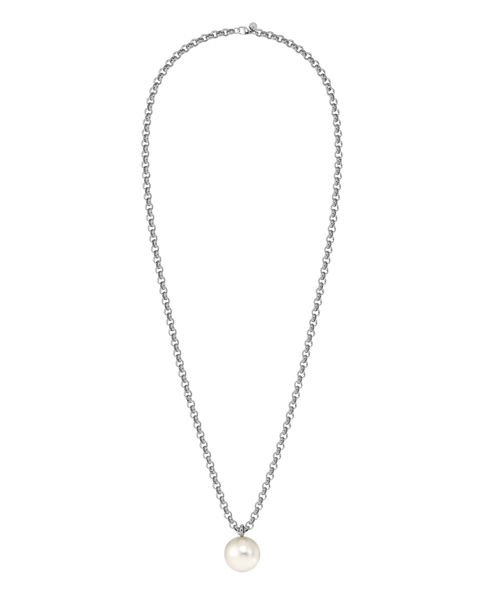 Halsband i blankt rostfritt stål med stor pärlemorpärla på ärtkedja – från serien Lexie.