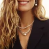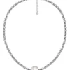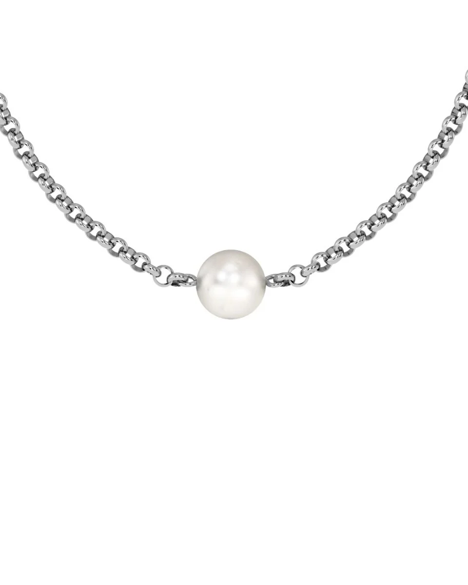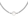 Halsband i blankt rostfritt stål med stor pärlemorpärla på ärtkedja – från serien Lexie.