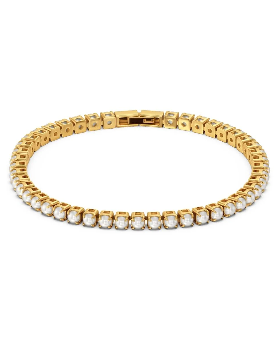 Multiarmband med minipärlor i blankt rostfritt stål – en pärlig tolkning av tennisarmbandet som sitter fint på handleden. Snyggt med seriens hoops.