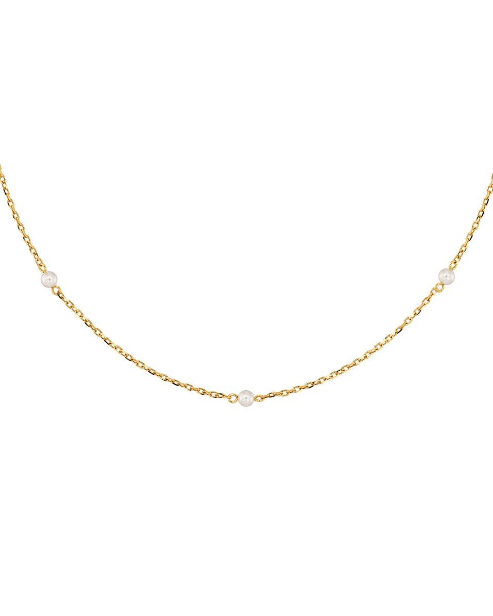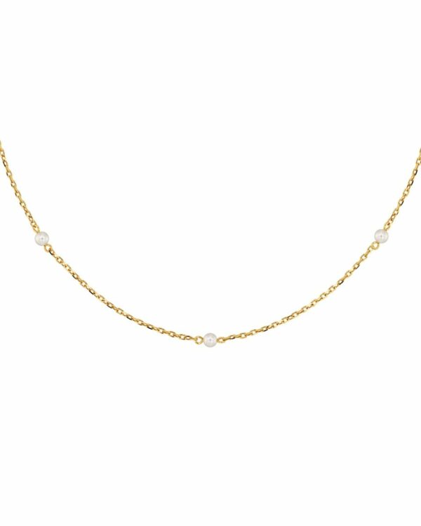 Elegant halsband med minipärlor i blankt rostfritt stål, perfekt att bära till både vardag och fest.