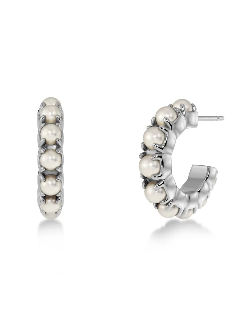 Små hoops med minipärlor i blankt rostfritt stål som kramar örsnibben. Romantiska, mångsidiga och fina att matcha med multiarmbandet och ringen.