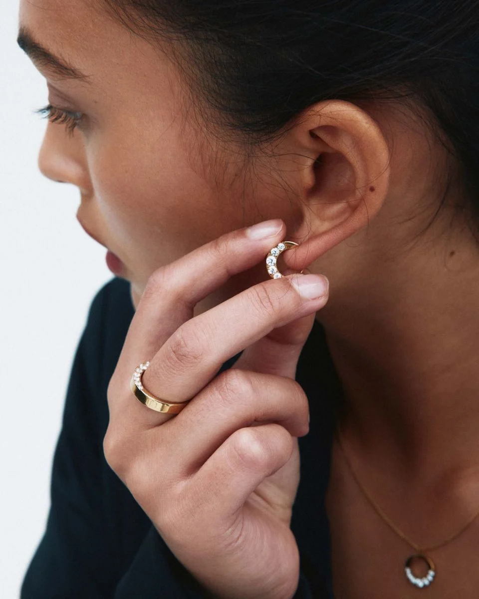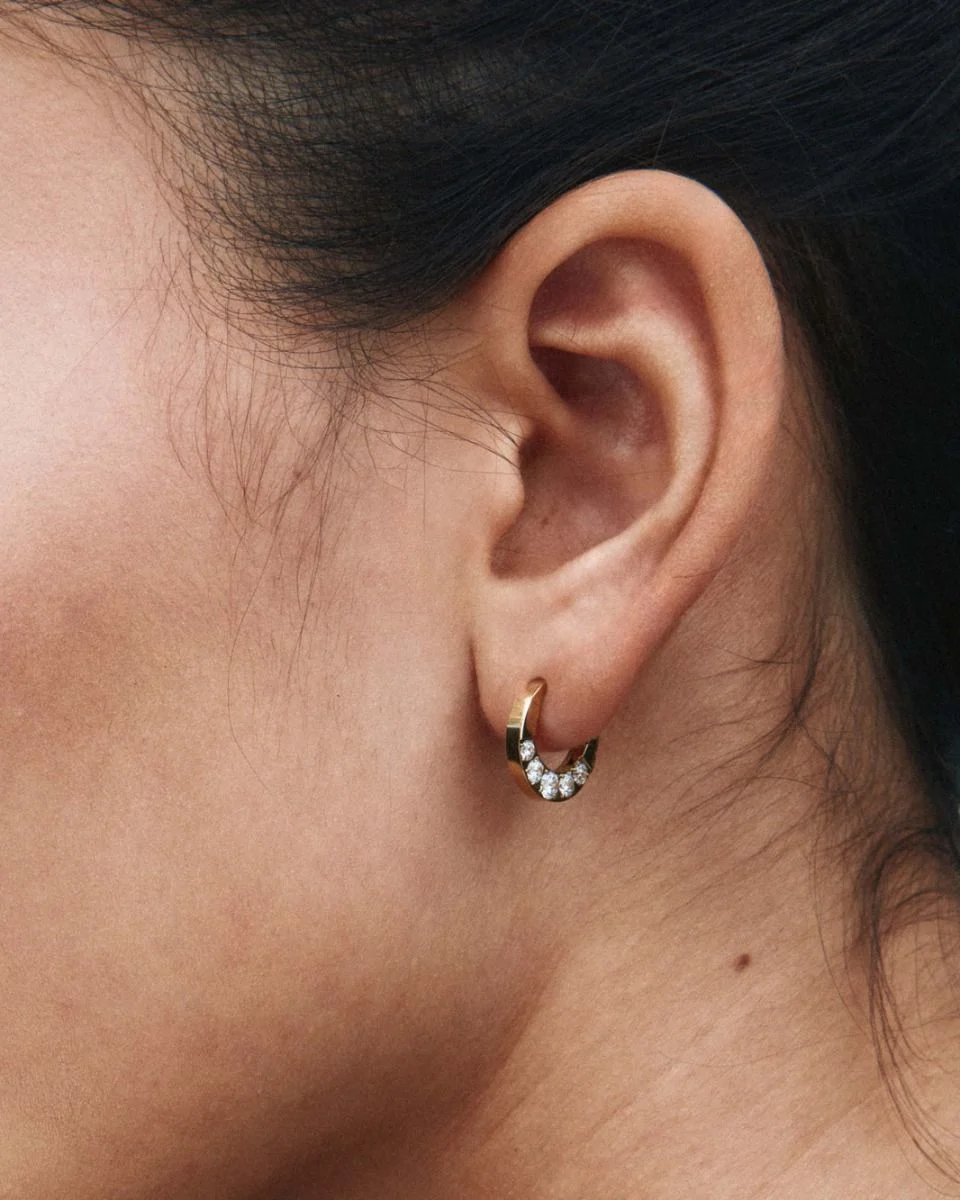 Jubileumsserien Monarch firar 20 år av tidlös elegans från Edblad. Här som större hoops i blankt rostfritt stål med glittrande stenar – en blivande klassiker som lyfter varje outfit.
