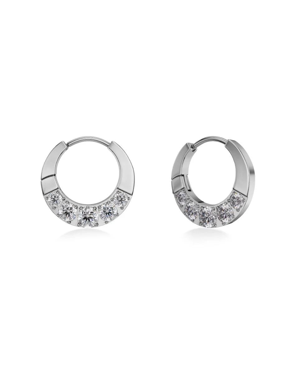 Jubileumsserien Monarch firar 20 år av tidlös elegans från Edblad. Här som större hoops i blankt rostfritt stål med glittrande stenar – en blivande klassiker som lyfter varje outfit.