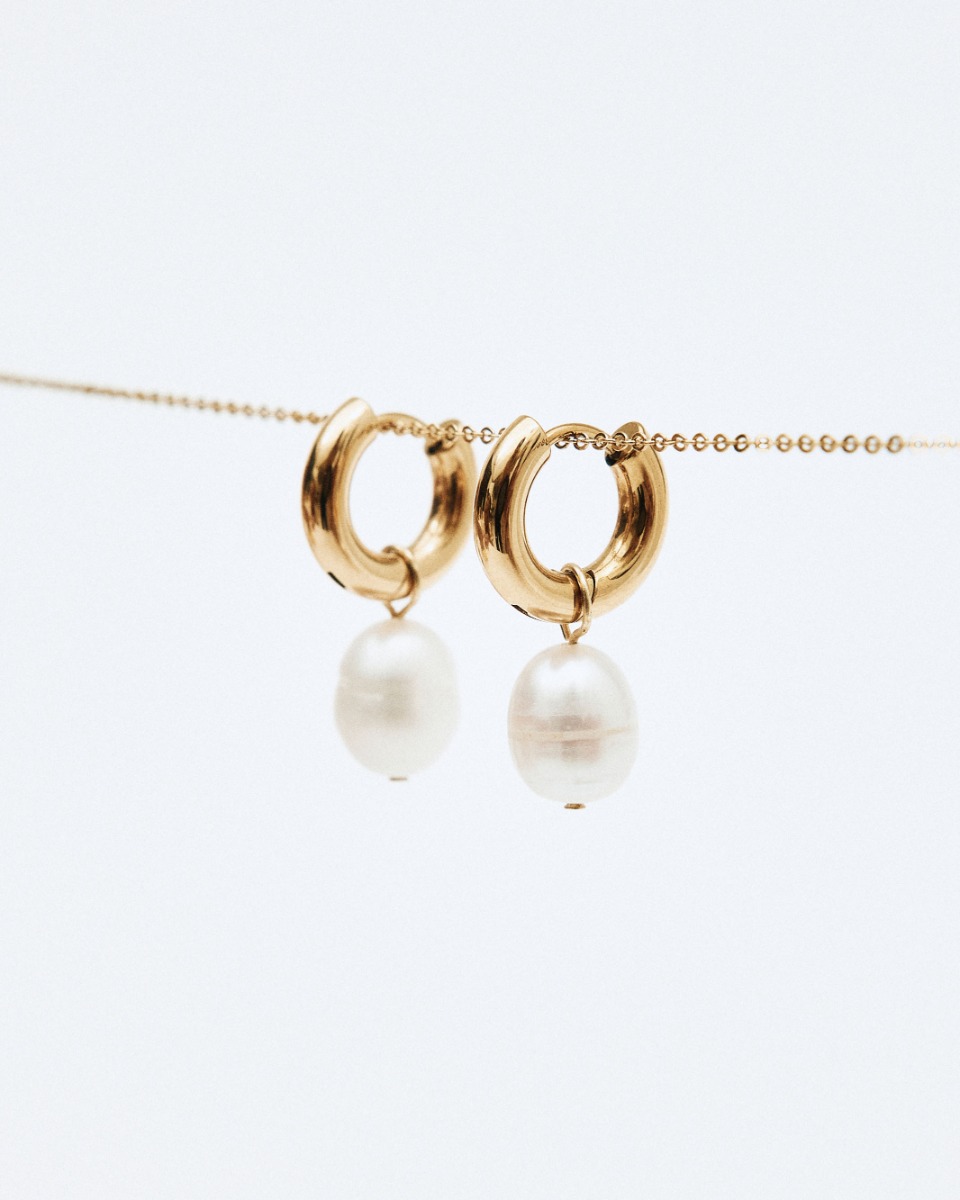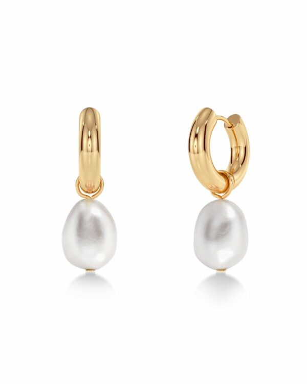 Små Perla-hoops med glittrande stenar och avtagbara sötvattenpärlor i 14K guldplätering
