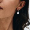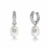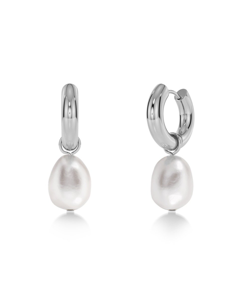 Perla-hoops i större modell med sötvattenpärlor och glittrande stenar, i blankt rostfritt stål.