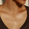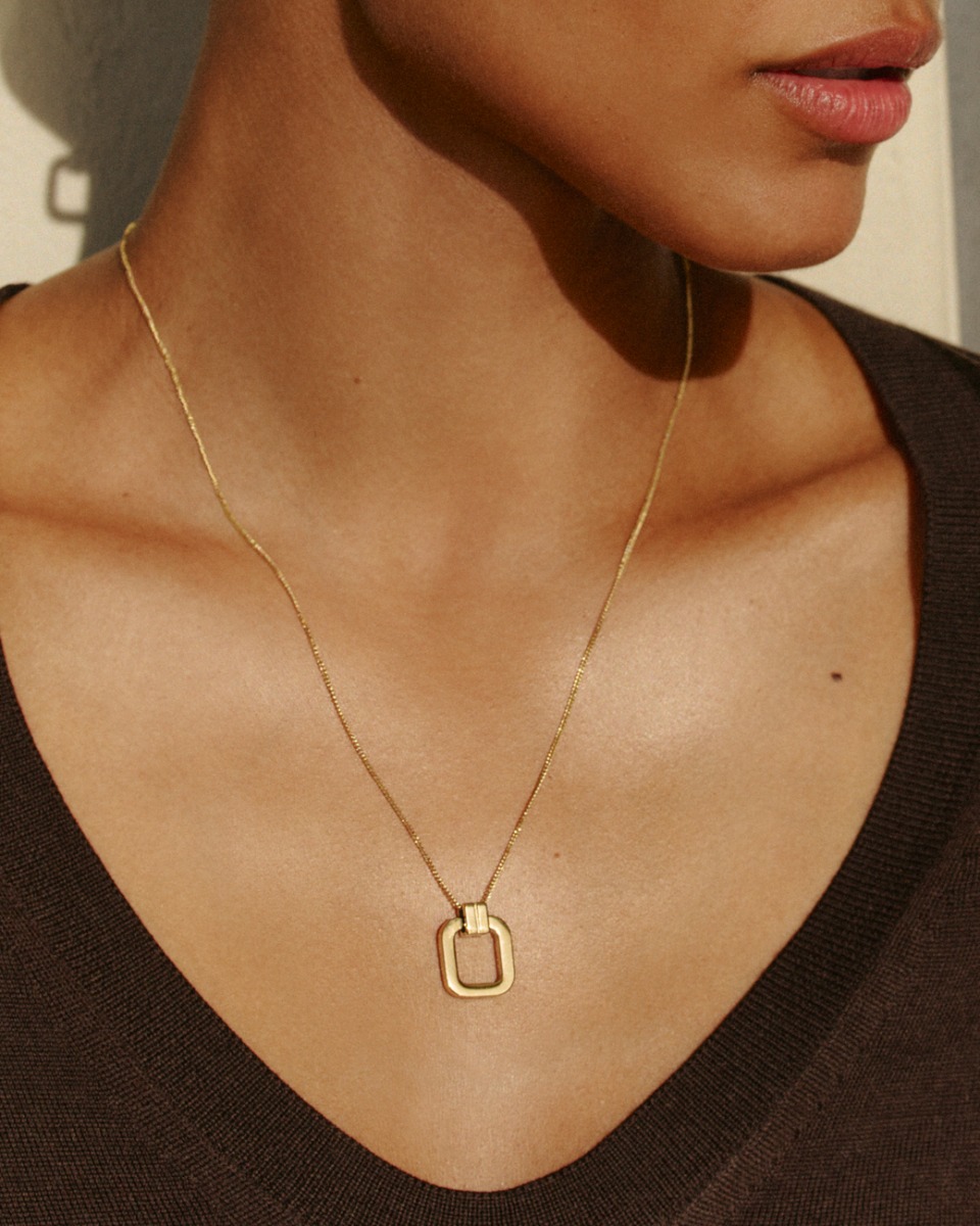 Plaza-halsbandet i 14k guldplätering har en mjukt formad kvadrat för en stilren look. Matcha med de små studsen i samma serie.