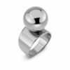 Sphere bygger på en serie klotformer. Här som ring med en enkel kula på ett brett, blankt band i rostfritt stål.