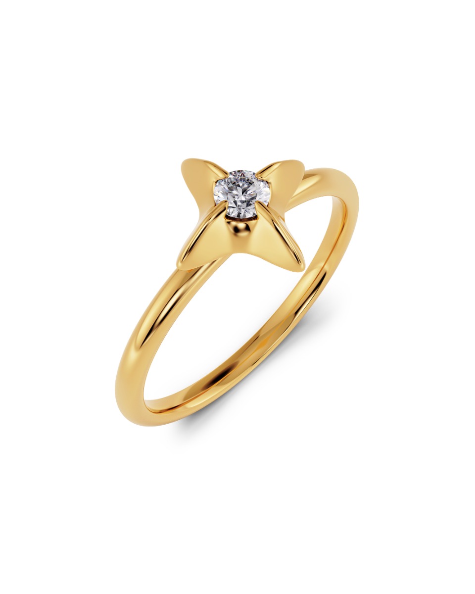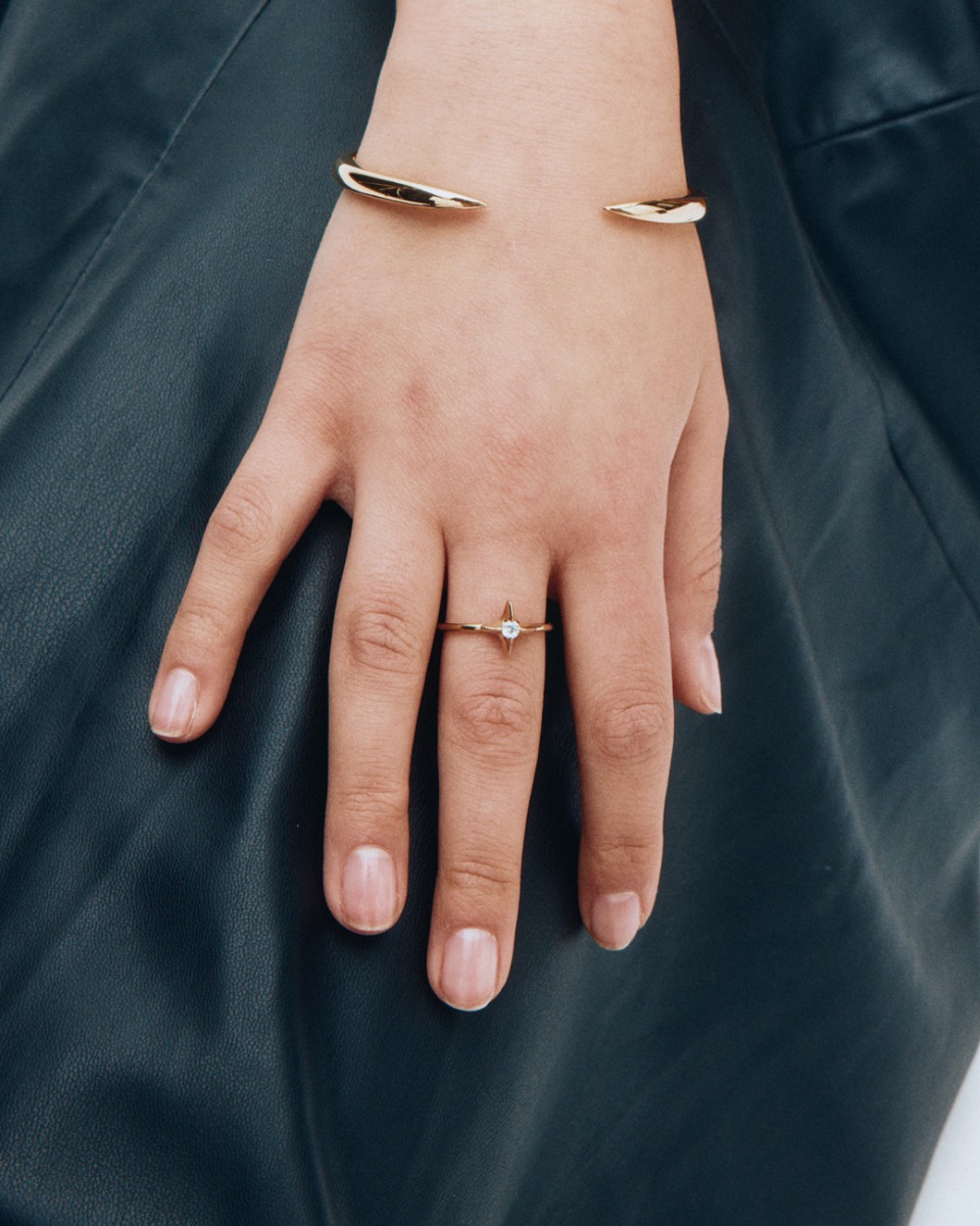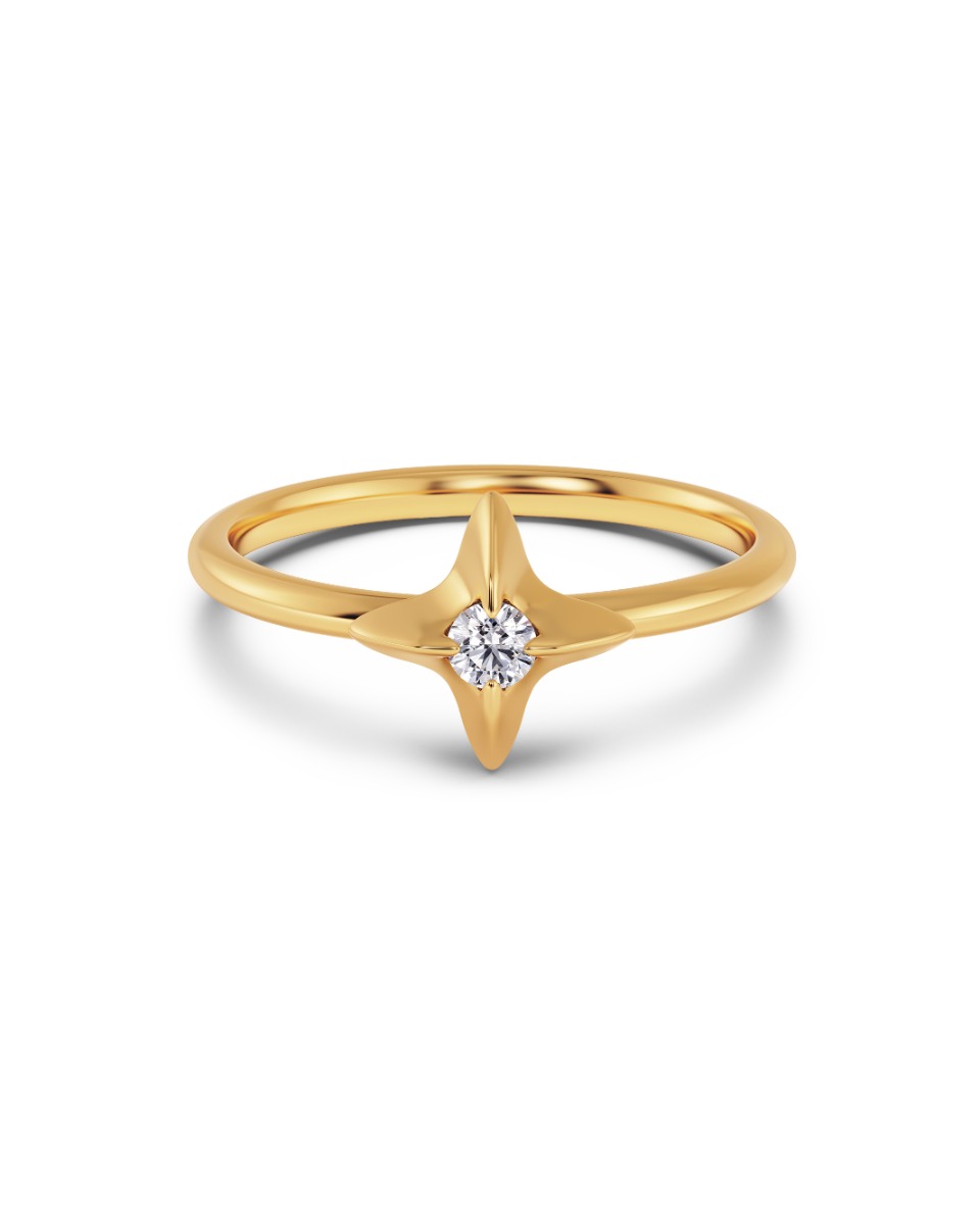 Nätt ring i blankt rostfritt stål med en stjärna och glittrande sten som lyser upp handen. Perfekt att bära ensam eller tillsammans med andra smycken ur Stellar-serien.