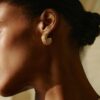 Viva är smycken i tunn metall med en elegant och lätt design. Här som blanka creoler i 14K guldplätering.