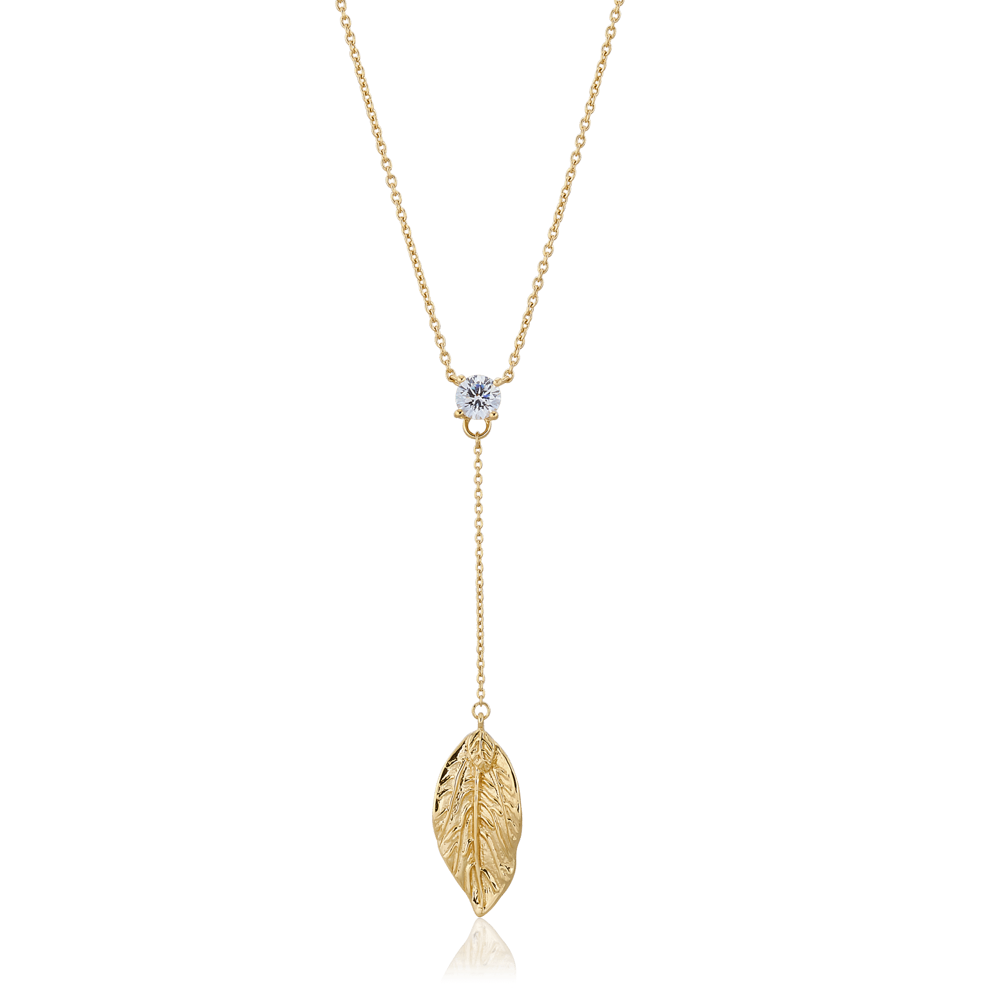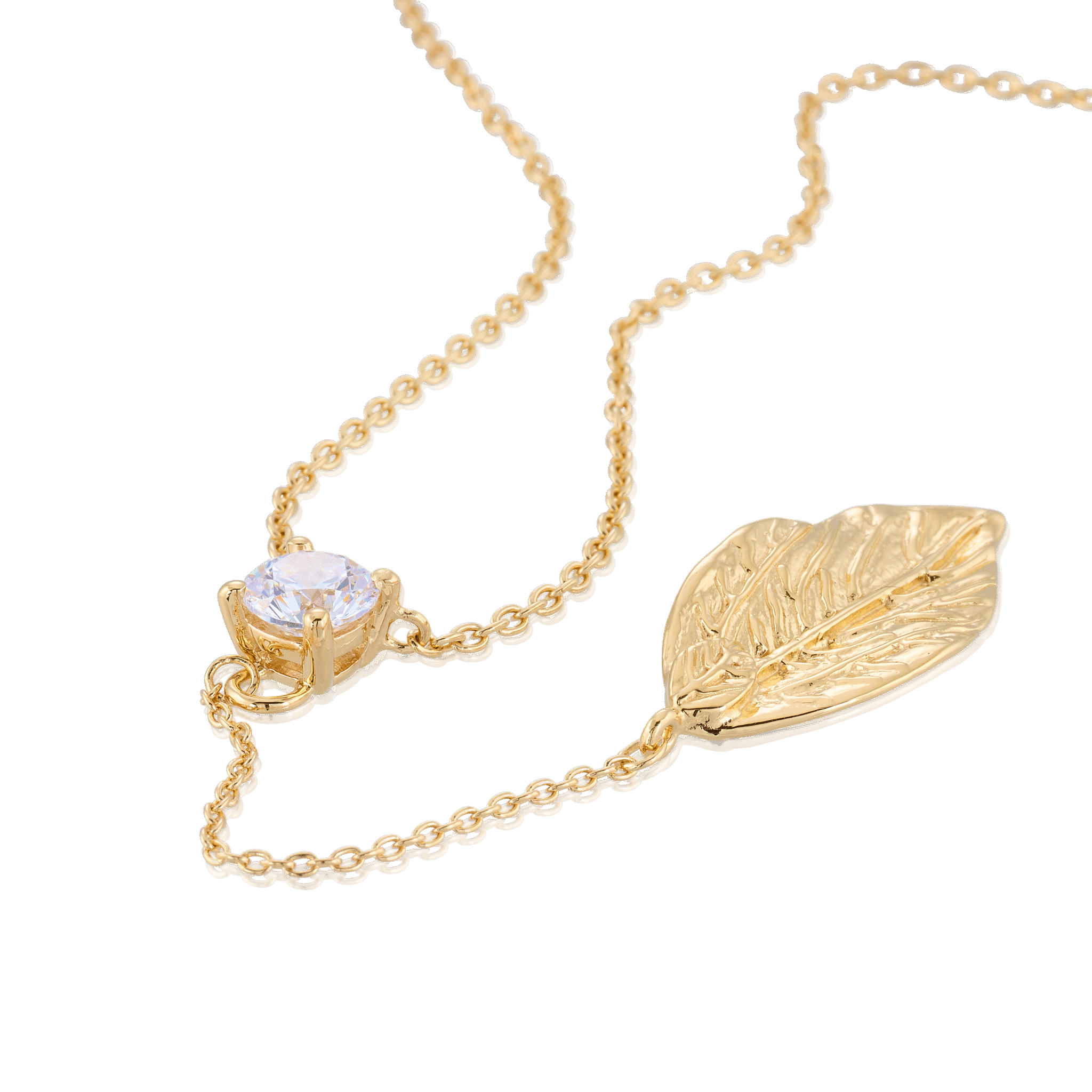 Halsband med ett vackert höstlöv och en gnistrande cubic zirconia-sten.