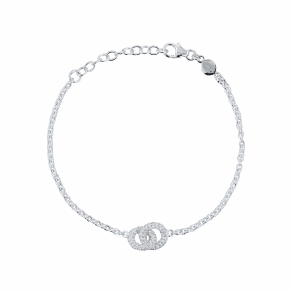 The Knot Sparkling Mini är ett elegant armband med två sammanlänkade ringar dekorerade med cubic zirconia.
