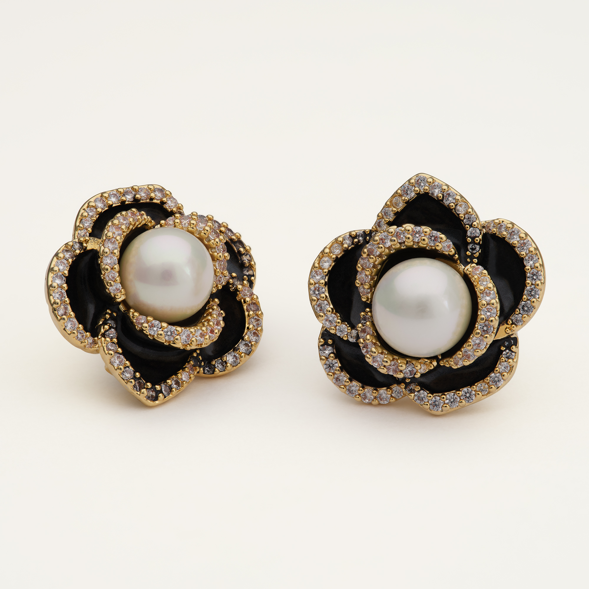 Våra Coco Rose-örhängen har en iögonfallande rosendesign i kontrastrikt svart och vitt – perfekt för dig som älskar tidlös skönhet med en modern twist.