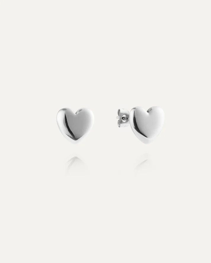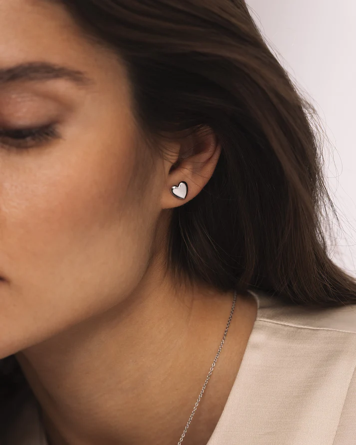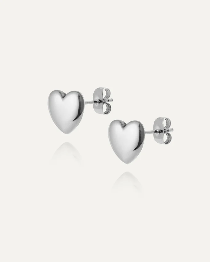 Hjärtformade örhängen i stål i mellanstorlek som balanserar elegans och uttryck. En modern tolkning av en klassisk symbol för kärlek.