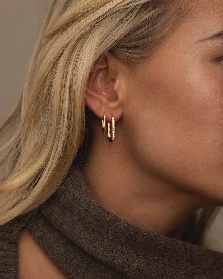 Tidlösa hoops i gyllene stål som lyser med mjuk elegans. Vattentålig design som behåller sin glans i både regn och dusch.
