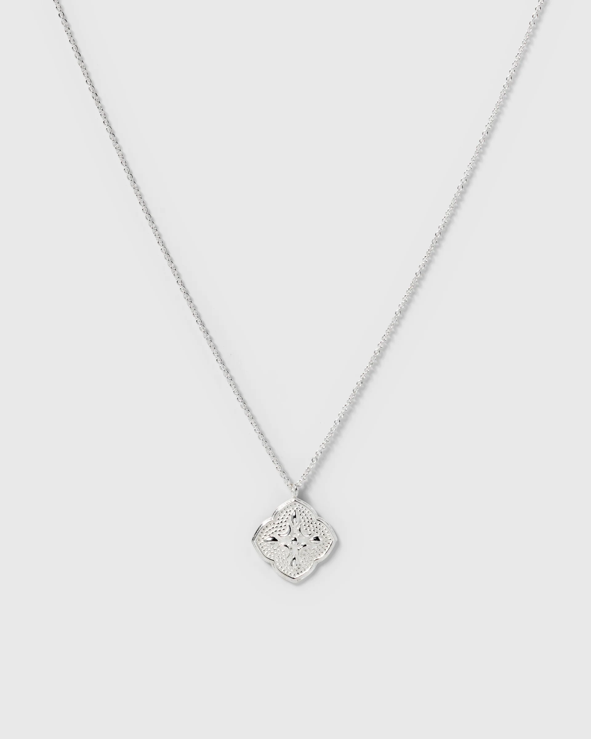 Luna Necklace är ett halsband i 100% återvunnet silver. Den ovala kedjan bär en måninspirerad berlock – en symbol för styrka, förändring och intuition. På baksidan finns gravyr från Kvinna till Kvinna och Syster P som en påminnelse om smyckets syfte.