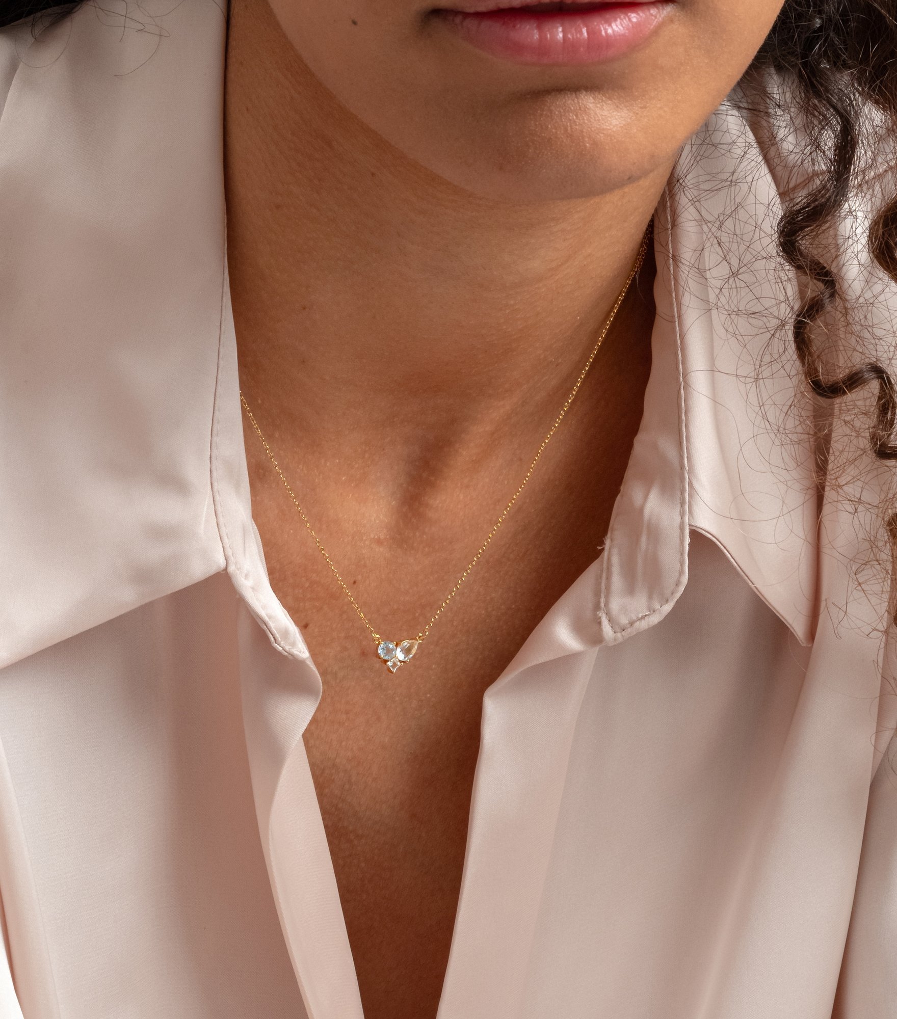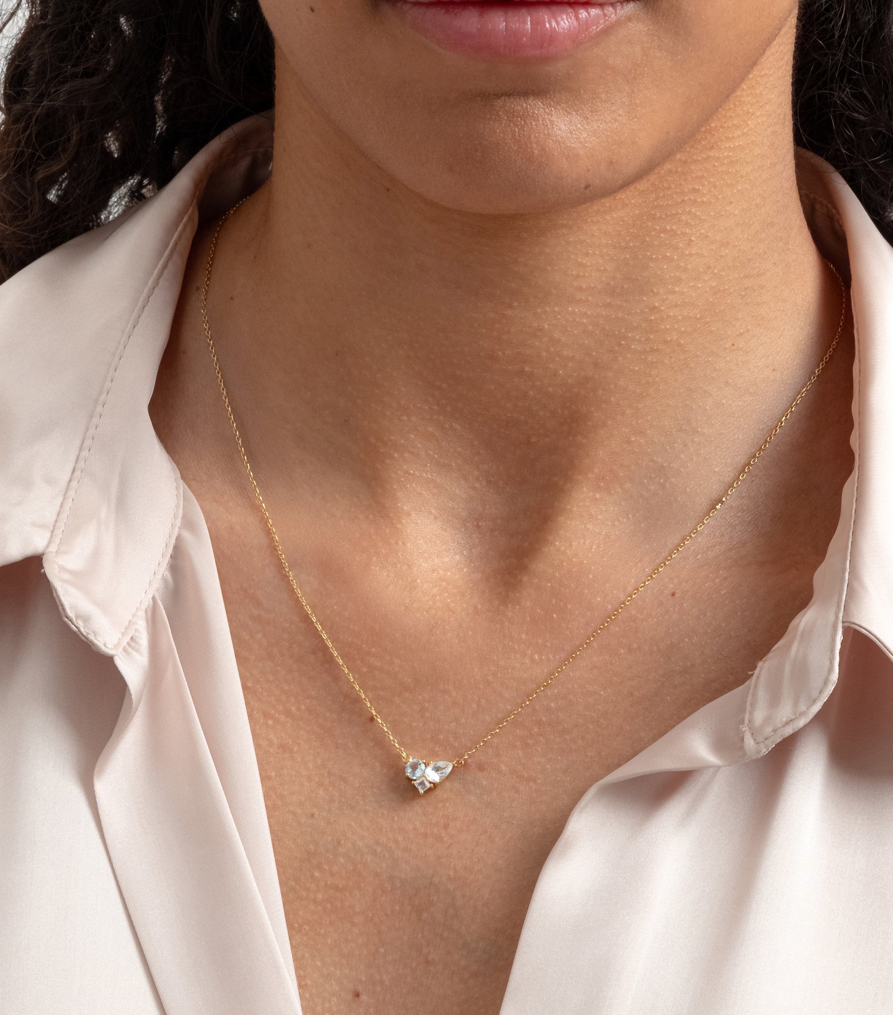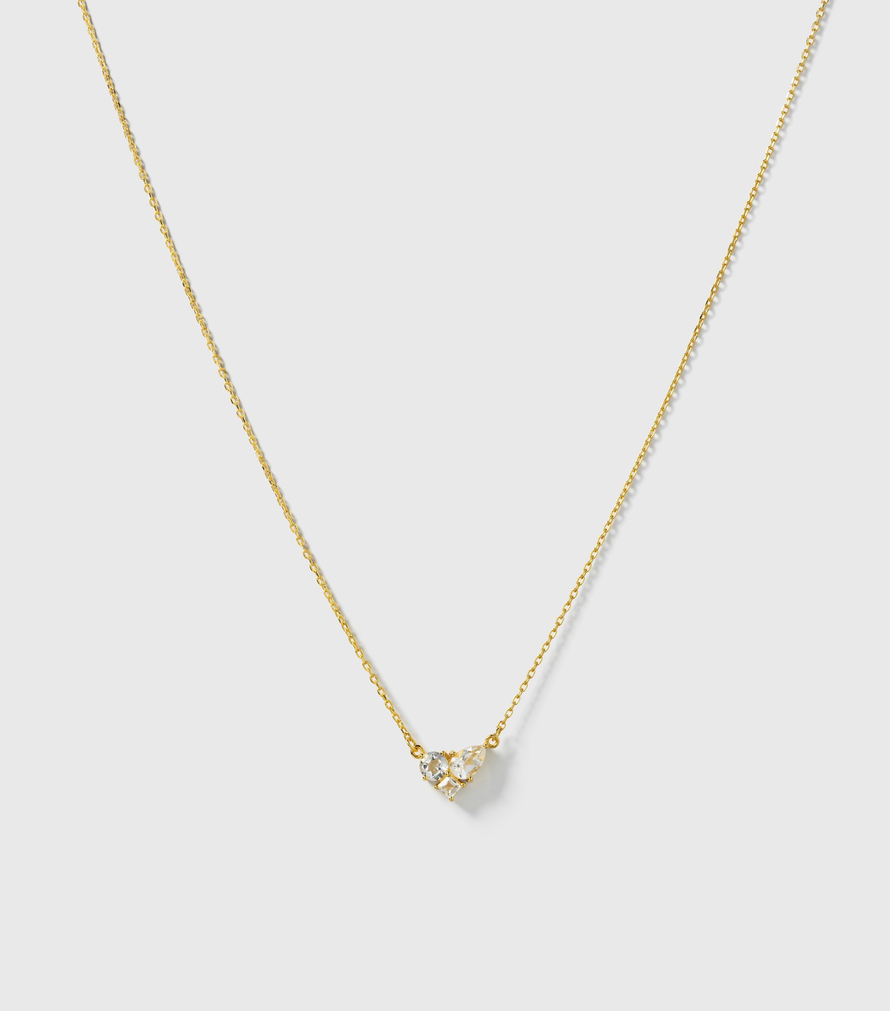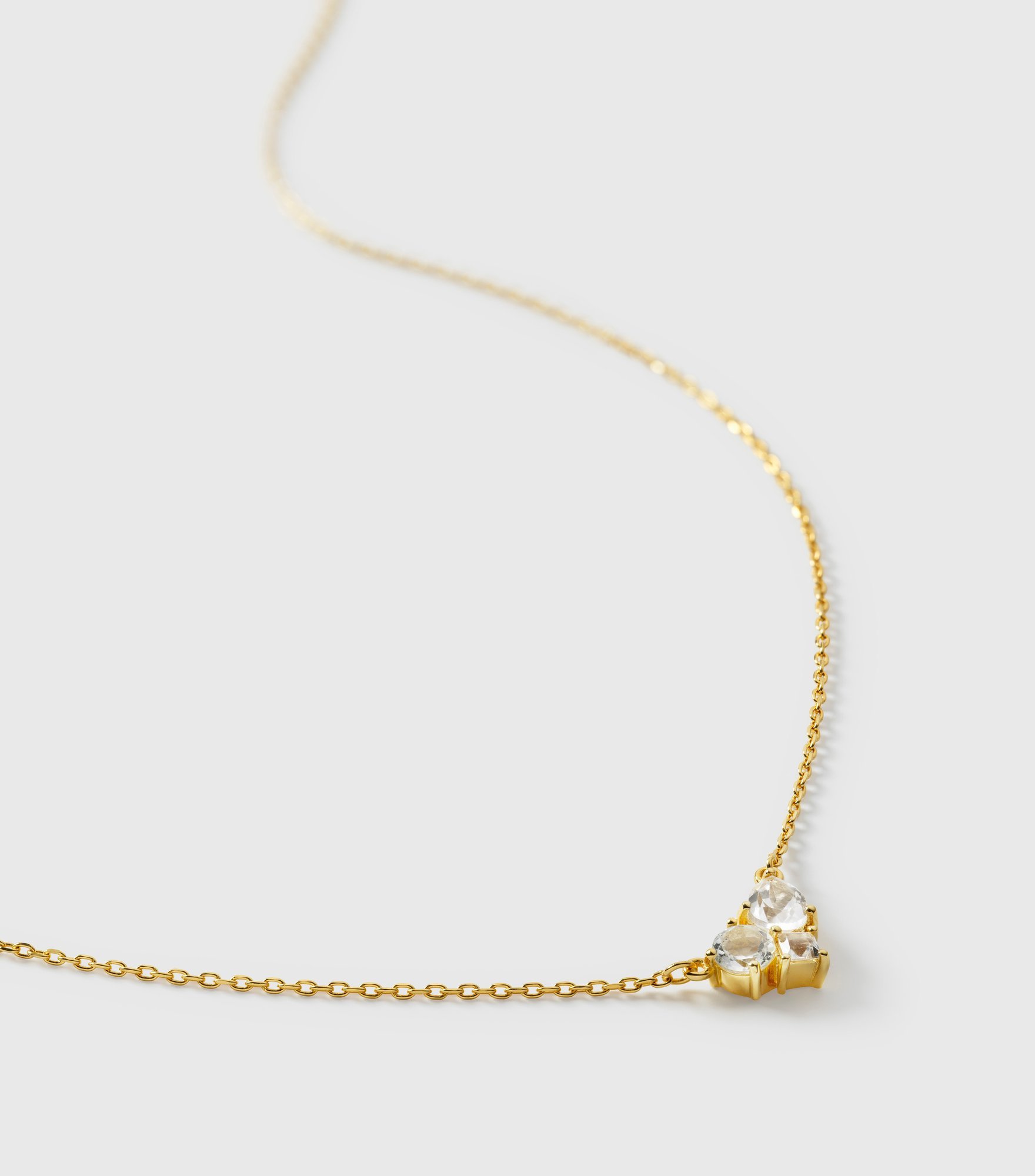 Halsband med ett hänge infattat med vita topaser i olika former. Halsbandet har en fin kedja tillverkat av 100% återvunnet silver.