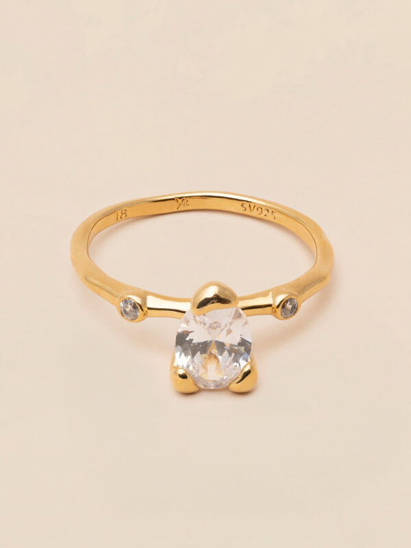 Embla-ringen i 925 sterlingsilver har en stor gnistrande kristall omgiven av blomblad. Snygg att bära ensam eller tillsammans med andra ringar.